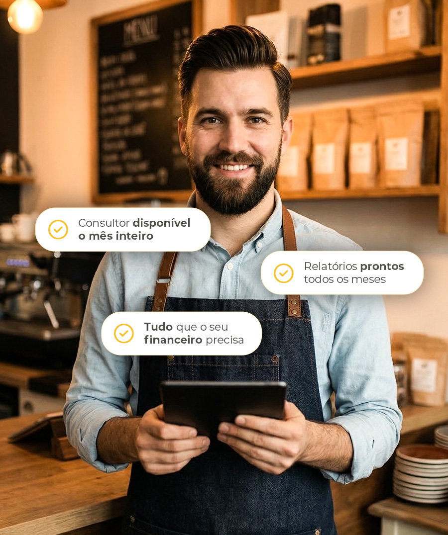 Fechamento completo do mês anterior entregue até o dia 10.